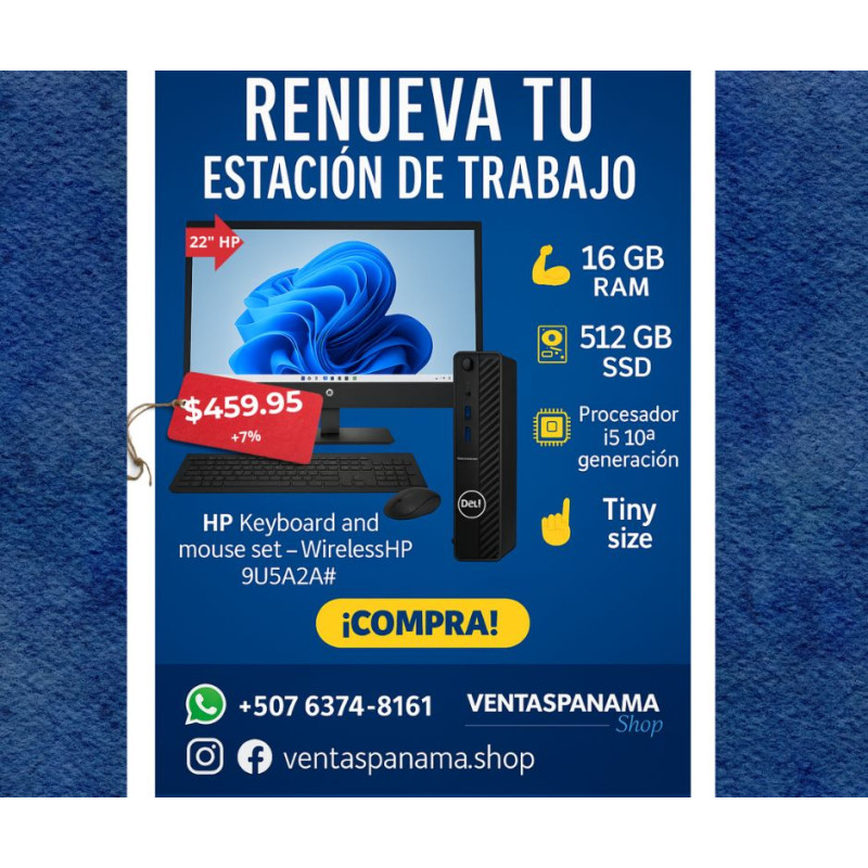 El Kit de Oficina Dell OptiPlex 3080 Mini es una solución práctica y profesional para entornos de trabajo que requieren rendimiento, conectividad y bajo consumo de energía. Este combo incluye PC, monitor y periféricos inalámbricos, ideal para oficinas, puntos de venta o uso corporativo.