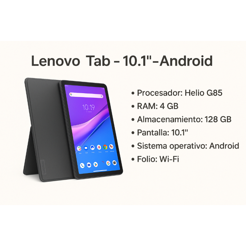 La Lenovo Tab de 10.1" es ideal para entretenimiento, estudio y productividad. Gracias a su procesador Helio G85, almacenamiento rápido y diseño portátil, tendrás todo lo que necesitas en un solo dispositivo Android.
